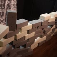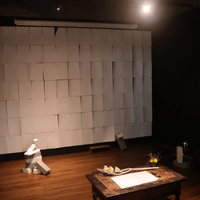 石膏女足作為被定型、被觀看的身體片段,象徵身體如何被塑形與固定。它既是人體藝術的殘片,也是被制度化審美所框定的形象。當它與灰塵、紙張、磚塊並置時,物件之間開始形成彼此指涉、彼此延續的關係。沙發與木桌則引入另一種身體的可能性。它們不是雕塑性的身體,而是使用中的身體,是坐下、停留、交談、閱讀的身體。稿紙散置於桌面,使語言與物質交會,暗示思考與存在之間的未完成狀態。